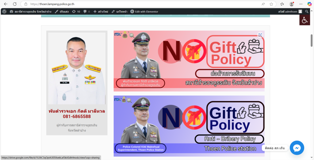 แสดงภาพอินโฟกราฟิก บนหน้าเเรกของเว็บไซต์ของสถานีตำรวจภูธรเถิน